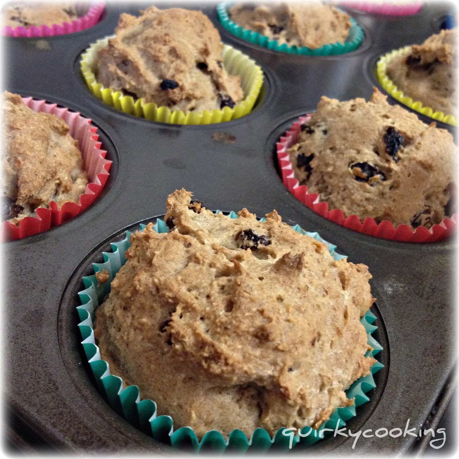 7. Spoon heaped, rounded tablespoons of dough into muffin cups, or drop them close together in rows in a lined baking dish, and leave to rise in a warm spot for 30 minutes.You can wet your hands and gently smooth the buns so they look round if you like. I did that with the ones below in the dish, but not with the ones in the muffin tins. Set the oven to 200 degrees C to heat up while they rise. (They won't rise as much as regular bread.)