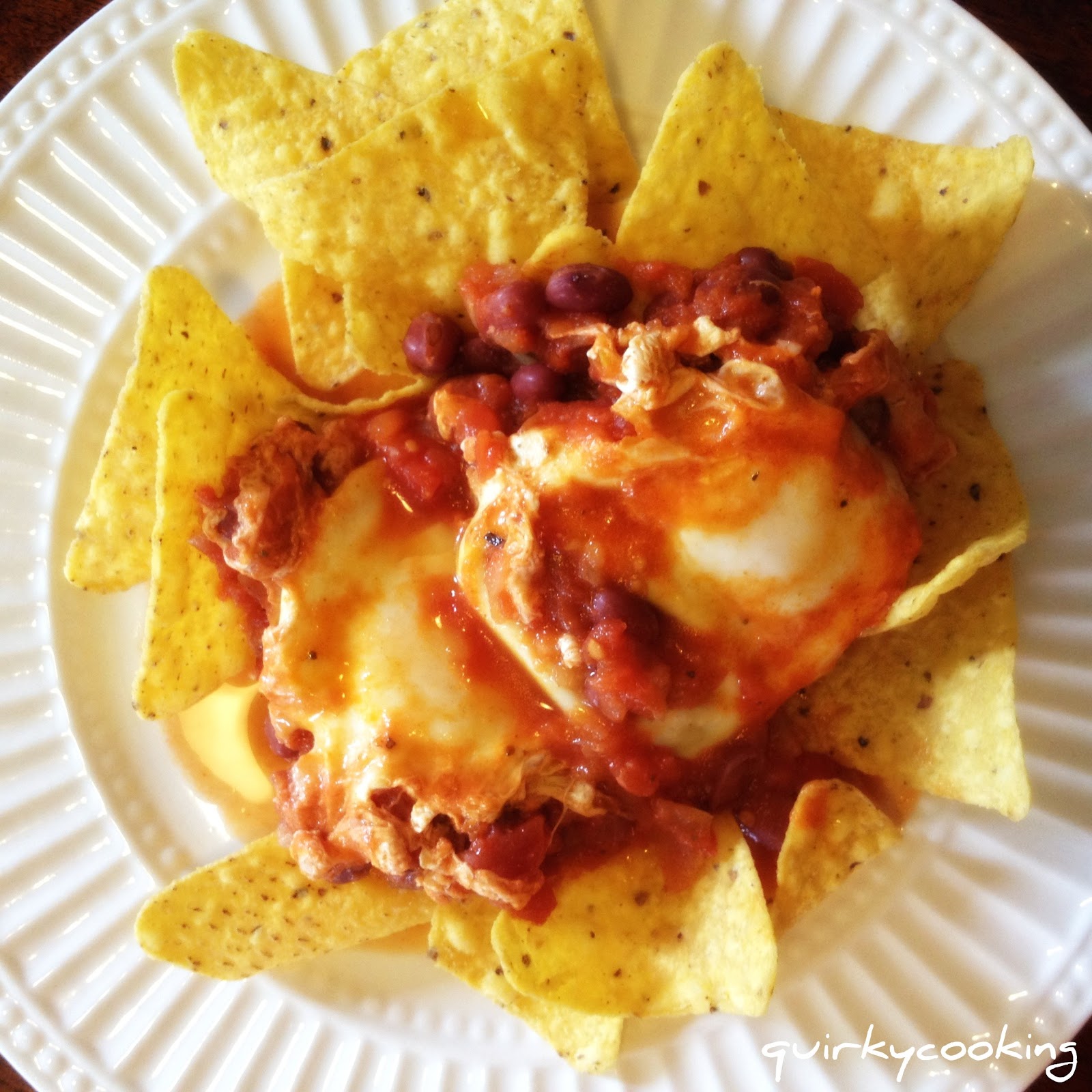 (I often make nachos, then use the lefover sauce for Huevos Rancheros for one or two people.)